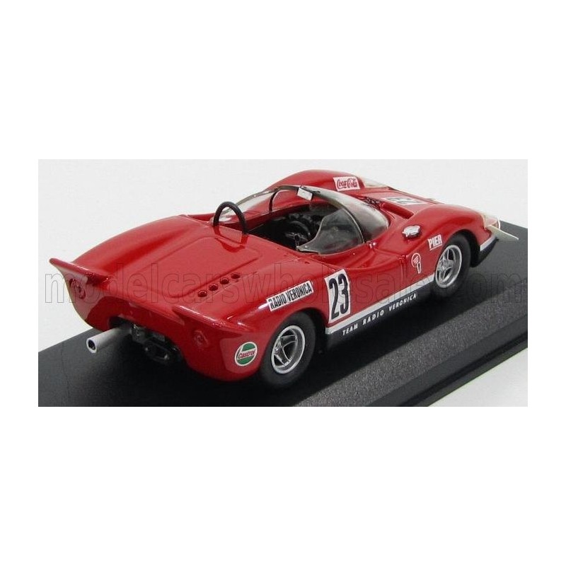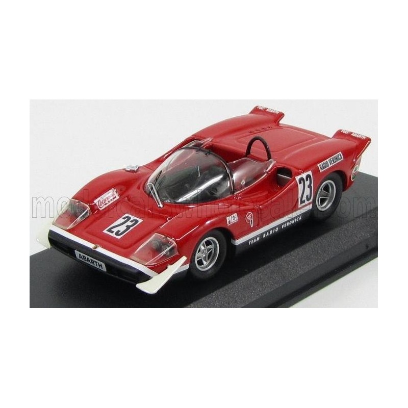 Miniature diecast car racing 1/43 de la Fiat Abarth 2000S n 23 Team Radio Veronica pilotée par Ed Swart au Martini Trophy 300 à Silverstone en 1969. Modèle réduit de voiture Best Model 9568. Catalogue Miniatures automobile Best Model 2021. Maquette auto de collection.
