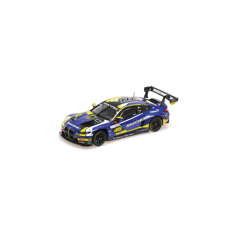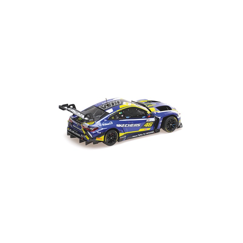 Miniature diecast car racing 1/43 de la BMW M4 GT3 n 46 Team WRT pilotée par Valentino Rossi - Maxime Martin - Raffaele Marciello aux 4 Heures du Castellet 2024. Modèle réduit de voiture Minichamps 410242346. Catalogue Miniatures automobile Minichamps 2025. Maquette auto de collection.