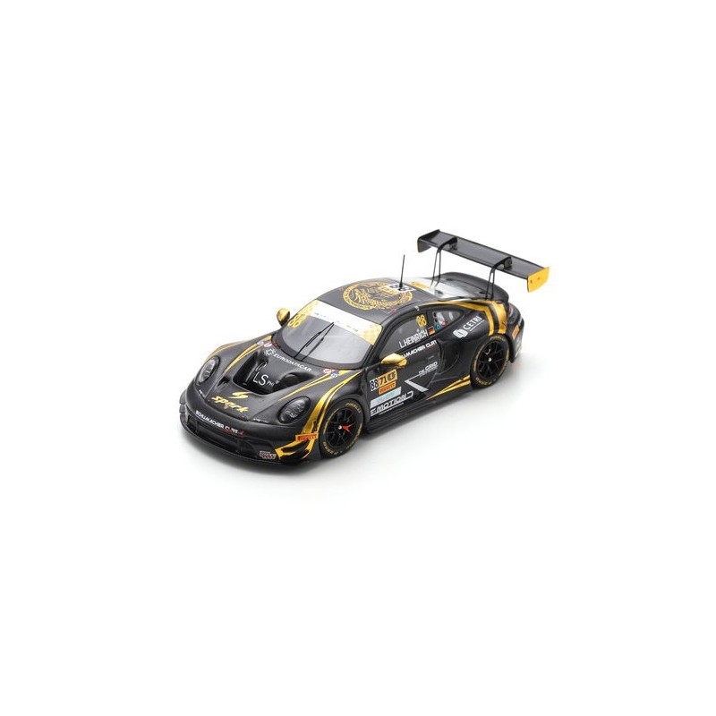 Miniature diecast car racing 1/43 de la Porsche 911 992 GT3 R n 88 Schumacher CLRT Racing Team pilotée par Laurin Heinrich lors de la FIA GT World Cup Macau 2024. Modèle réduit de voiture Spark SA299. Catalogue Miniatures automobile Spark 2025. Maquette auto de collection.