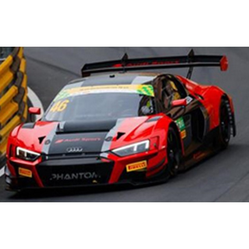 Miniature diecast car racing 1/43 of the Audi R8 LMS GT3 EvoII n 46 Audi Sport Asia Team Phantom driven by Joel Eriksson during the Macau FIA GT World Cup 2025. Limited Edition 300 pcs. Spark SA307 model car. Spark 2026 Automobile Miniatures Catalog. Collectible car model.