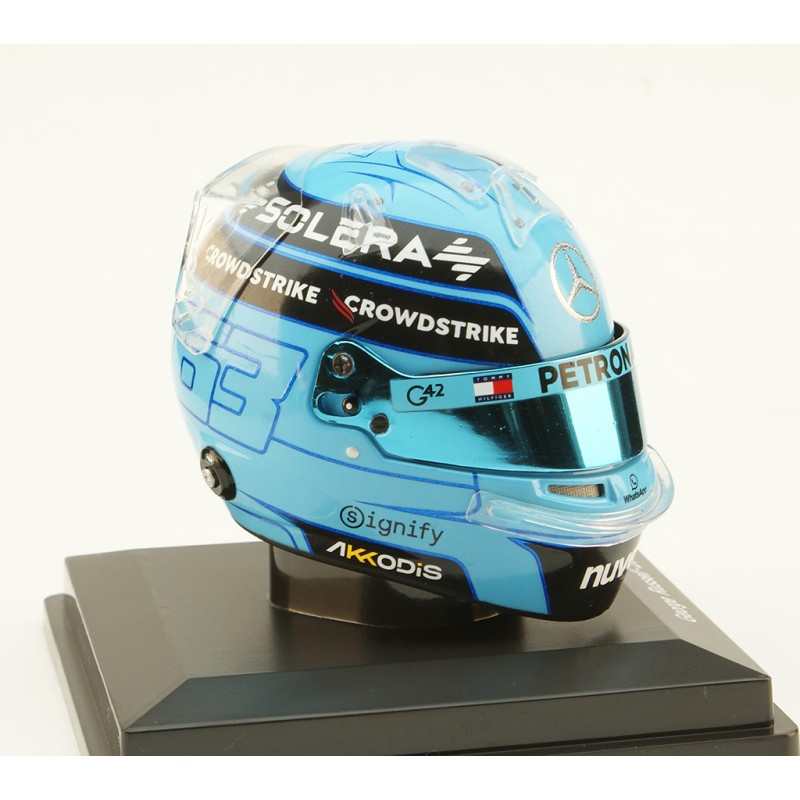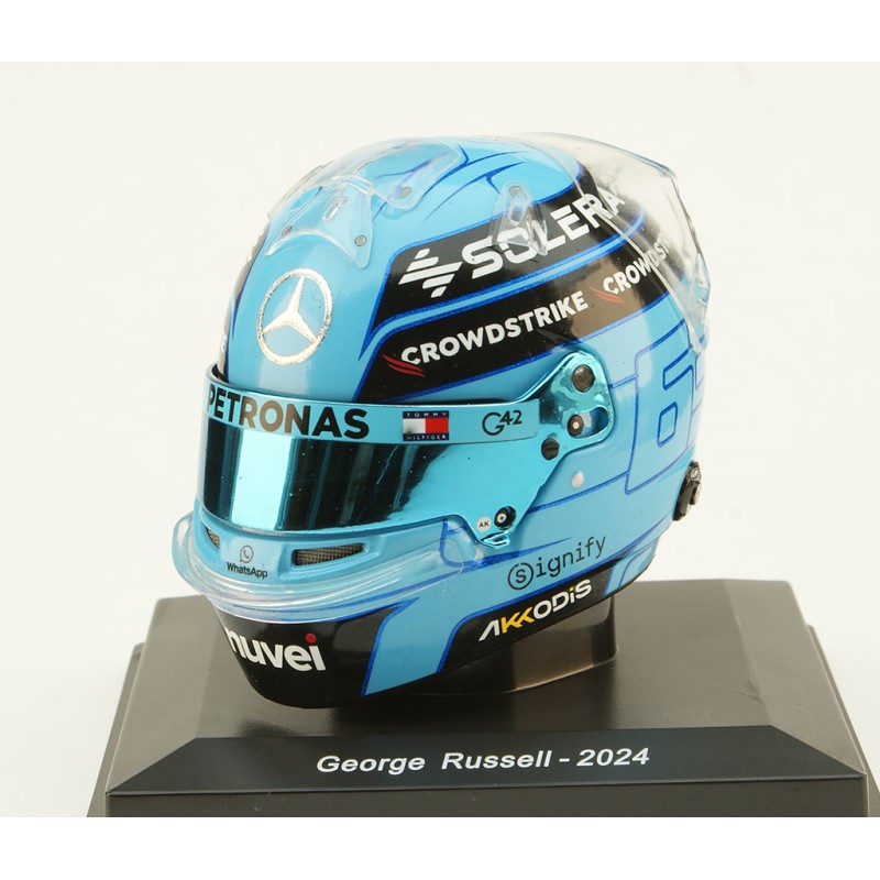 Casque Helmet 1/5 de George Russell lors de la saison de Formule 1 2024. Mercedes. Miniature helmet Spark 5HF146. Maquette F1 de collection.