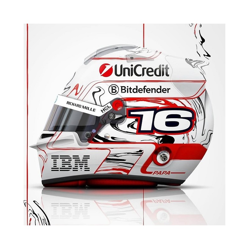 Casque Helmet 1/5 de Charles Leclerc lors du Grand Prix du Japon de Formule 1 2025. 150th GP. Miniature helmet Looksmart LSHEL012. Maquette F1 de collection.