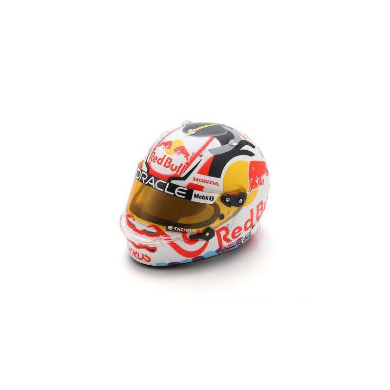 Casque Helmet 1/5 de Yuki Tsunoda lors du Grand Prix du Japon de Formule 1 2025. RedBull. Miniature helmet Spark 5HF204. Maquette F1 de collection.
