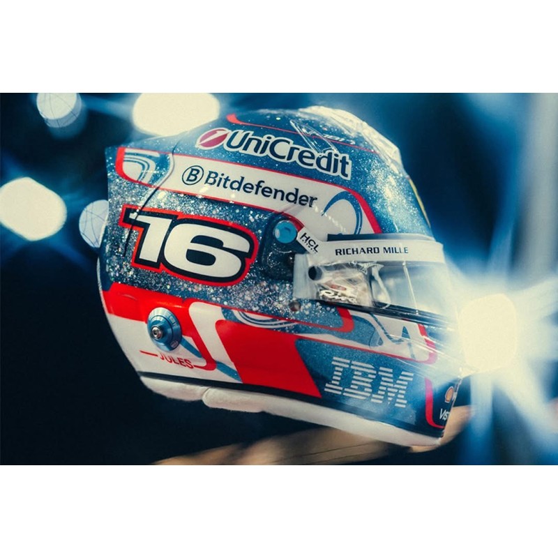 Casque Helmet 1/5 de Charles Leclerc lors du Grand Prix de Singapour de Formule 1 2025. Scuderia Ferrari. Miniature helmet Looksmart LSHEL024. Maquette F1 de collection.