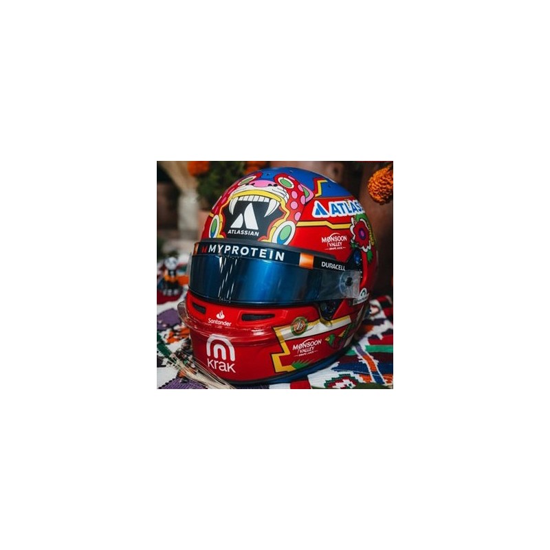 1/5 scale helmet worn by Alexander Albon at the Mexico Grand Prix Formula 1 2025. Miniature helmet Spark 5HF233. Collectible model.