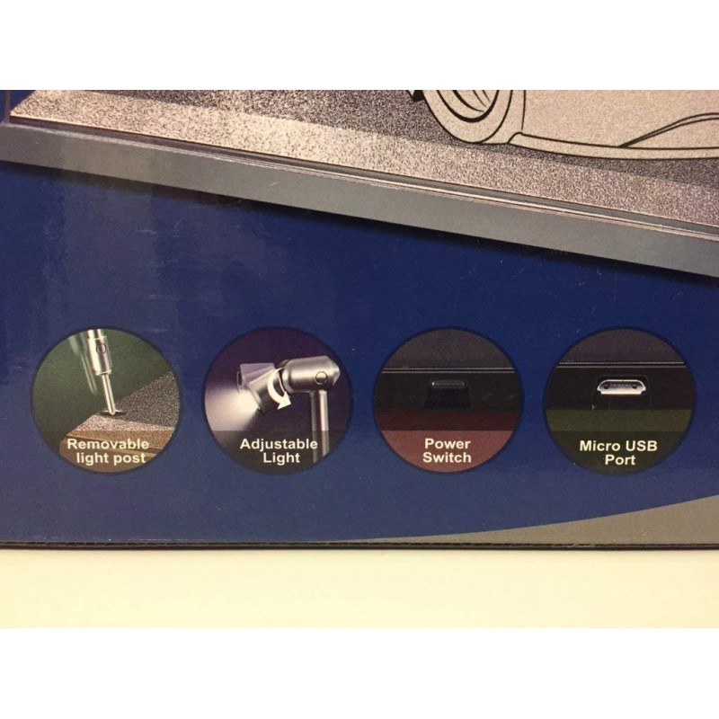 Vitrine Showcase avec leds pour exposer les modèles réduits à l'échelle 1/18. Base couleur Silver. L = 35,5 cm / H = 16 cm / l = 15,6 cm. Triple9 T9-189922.