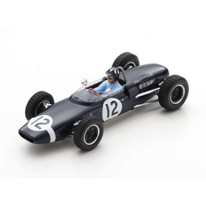 Miniature diecast F1 1/43 de la Lotus 18-21 n 12 pilotée par Graham Hill 3ème à Mallory Park en 1962. Modèle réduit de voiture Spark S7455. Catalogue Miniatures automobile Spark 2021. Maquette auto de collection.