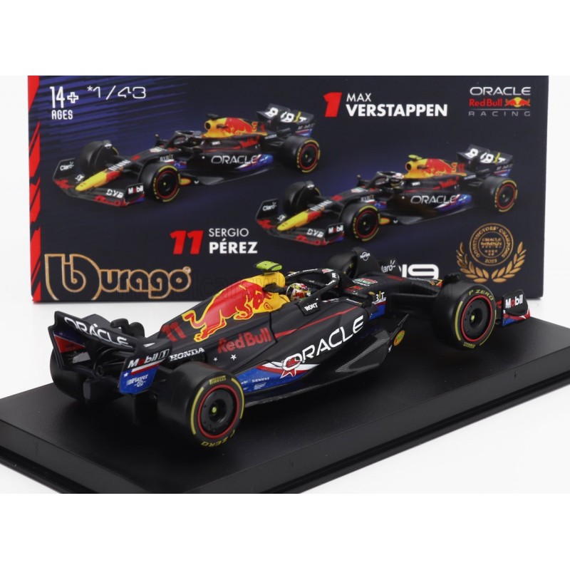 Red Bull RB19 with driver and showcase 11 Sergio Perez F1 4ème Austin 2023 Bburago BU38083-P-AUSTIN