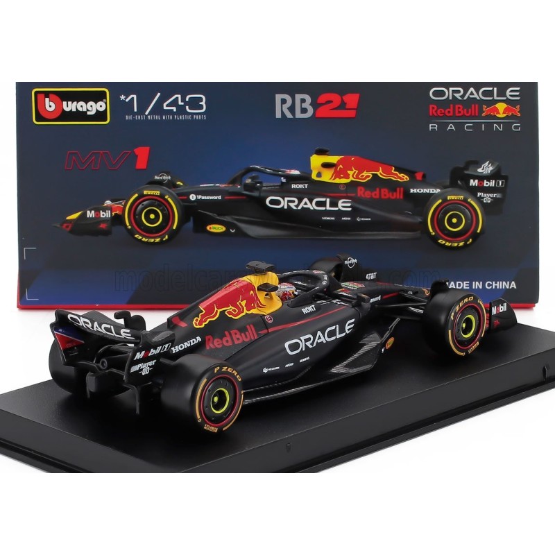 Red Bull RB21 with driver and showcase 1 Max Verstappen F1 2025 Bburago BU38234-V