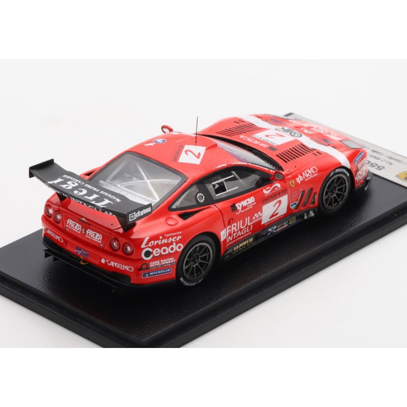 Miniature diecast car racing 1/43 de la Ferrari 550 Maranello n 2 BMS Scuderia Italia pilotée par L.Cappellari - F.Gollin - L.Bryner - E.Calderari lors de leur victoire aux 24 Heures de Spa Francorchamps 2004. Modèle réduit de voiture Looksmart LSRC218. Catalogue Miniatures automobile Looksmart 2026. Maquette auto de collection.