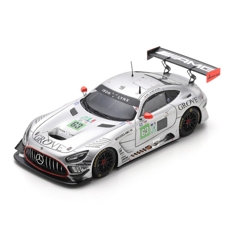 Miniature diecast Le Mans 1/43 de la Mercedes AMG LMGT3 n 63 Iron Lynx pilotée par S. Grove - B. Grove - Stolz aux 24 Heures du Mans 2025. Modèle réduit de voiture Spark S9298. Catalogue Miniatures automobile 24h Spark 2025. Maquette auto de collection.