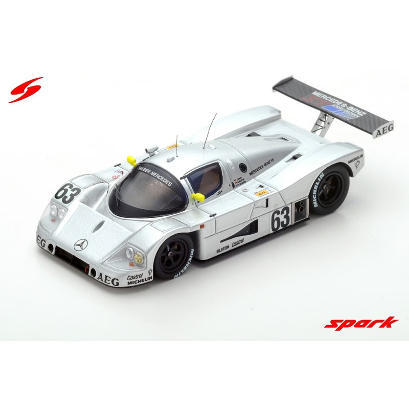 Le Mans 1/43 diecast miniature of the Sauber Mercedes C9 n 63 driven by J. Mass - S. Dickens - M. Reuter at the 1989 24 Hours of Le Mans. Winner. Spark 43LM89 model car. Automobile miniatures catalog 24h Spark 2026. Collectible car model.