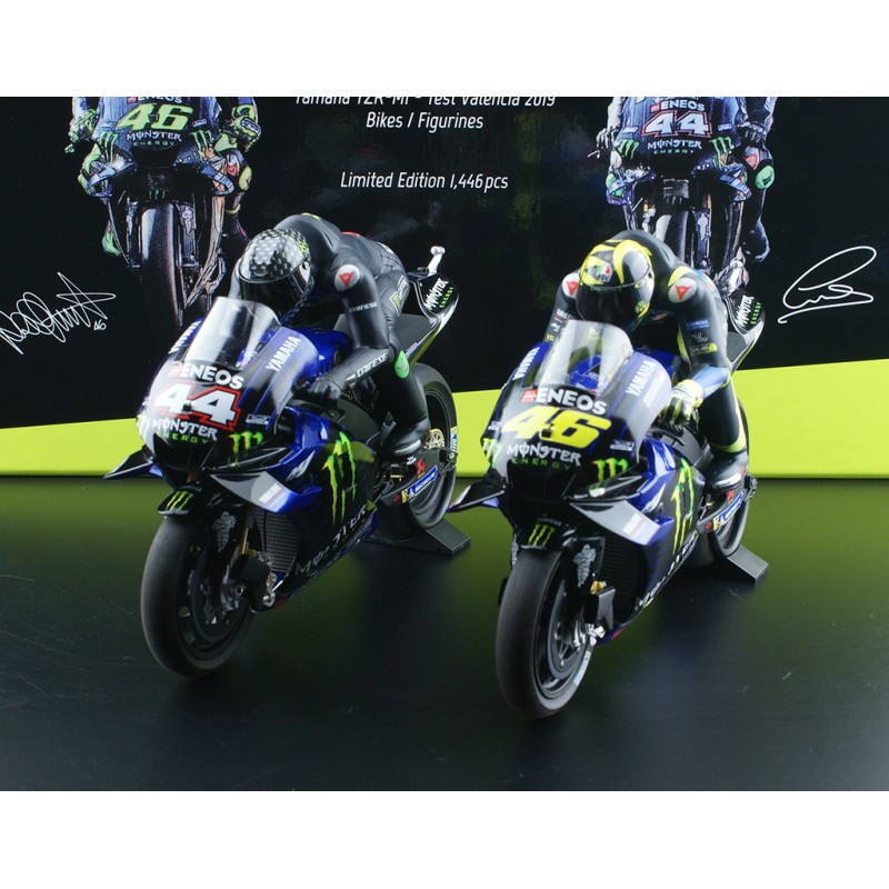 Set 2 Bikes + 2 Figurines Yamaha YZR M1 Lewis Hamilton Valentino Rossi Test Valencia 2019 Minichamps 122194446