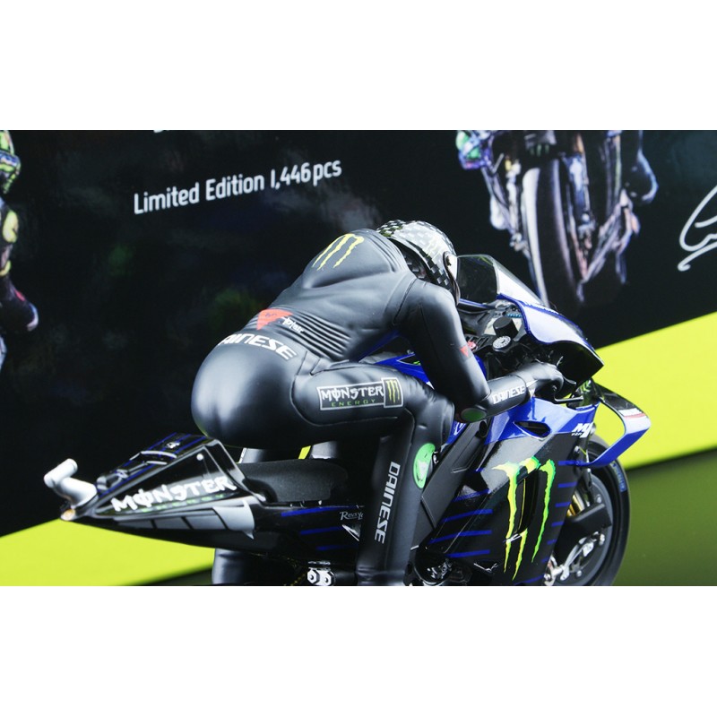 Miniature diecast bike 1/12 des Yamaha YZR-M1 44 et 46 pilotées par Lewis Hamilton et Valentino Rossi lors de la journée test à Valencia en décembre 2019. Yamaha YZR M1 Set 2 Bikes + 2 Figurines. Modèles réduits de motos avec figurines Minichamps 122194446. Catalogue Miniatures moto gp Minichamps 2020. Maquette moto de collection.