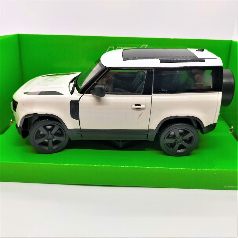Miniature diecast car 1/24 de la Land Rover Defender année 2020 couleur White White. Modèle réduit de voiture Welly WEL24110Wwhite. Catalogue Miniatures automobile Welly 2021. Maquette auto de collection.