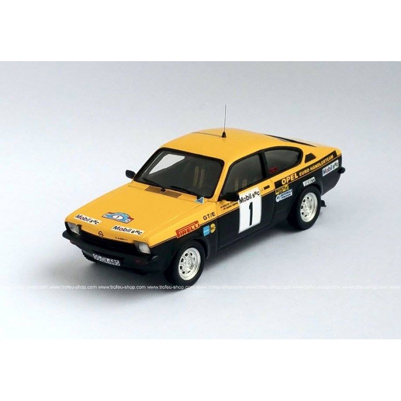 Miniature diecast rallye 1/43 de l'Opel Kadett C GTE n 1 pilotée par Rohrl - Menne au Westfalen-Lippe Rally 1977. Modèle réduit de voiture Trofeu TRODERY06. Catalogue Miniatures automobile Trofeu 2019. Maquette auto de collection.