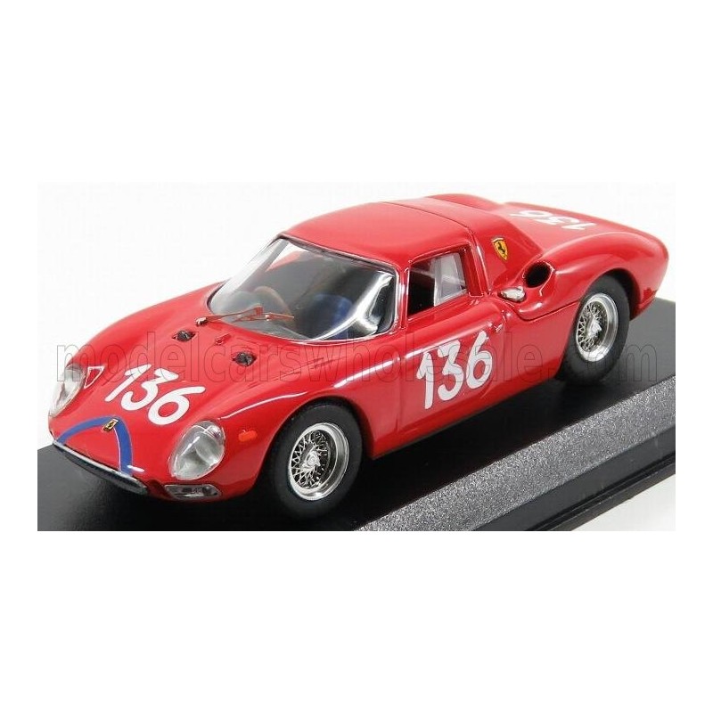 Miniature diecast rally 1/43 de la Ferrari 250 LM n 136 pilotée par Nicomedi - Lessona à la Targa Florio 1965. Modèle réduit de voiture de rallye Best Model 9683. Catalogue Miniatures automobile Best Model 2021. Maquette auto de collection.