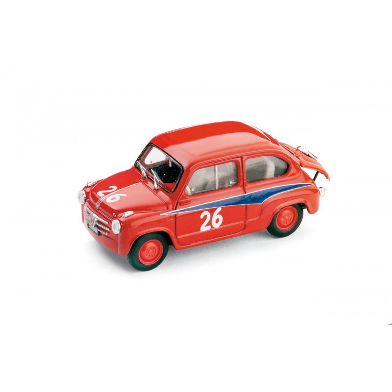 Miniature diecast rally 1/43 de la Fiat 600 Abarth 750 n 26 pilotée par Domenico Ogna au Mille Miglia 1956. Modèle réduit de voiture de rallye Brumm R304. Catalogue Miniatures automobile Brumm 2021. Maquette auto de collection.