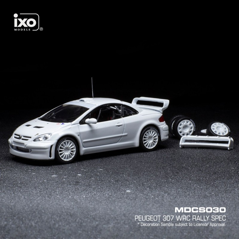 Peugeot 307 WRC with set of wheels and tyres and extra rear spoiler Rallye IXO MDCS030