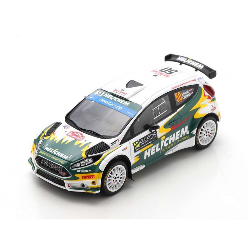 Miniature diecast rally 1/43 de la Ford Fiesta R5 n 50 pilotée par Vossen - Hulzebos au Rallye Monte Carlo 2023. Modèle réduit de voiture de rallye Spark S6727. Catalogue Miniatures automobile Spark 2023. Maquette auto de collection.