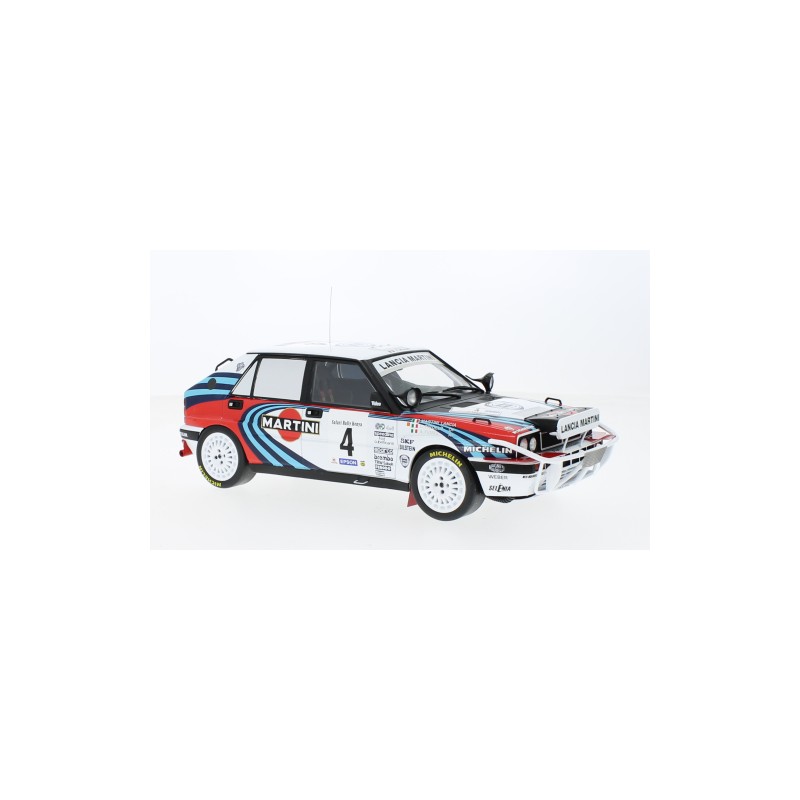 Miniature diecast rally 1/18 de la Lancia Delta Integrale 16V n 4 pilotée par Fiorio - Pirollo au Safari Rally 1990. Modèle réduit de voiture de rallye IXO 18RMC139B. Catalogue Miniatures automobile IXO 2023. Maquette auto de collection.