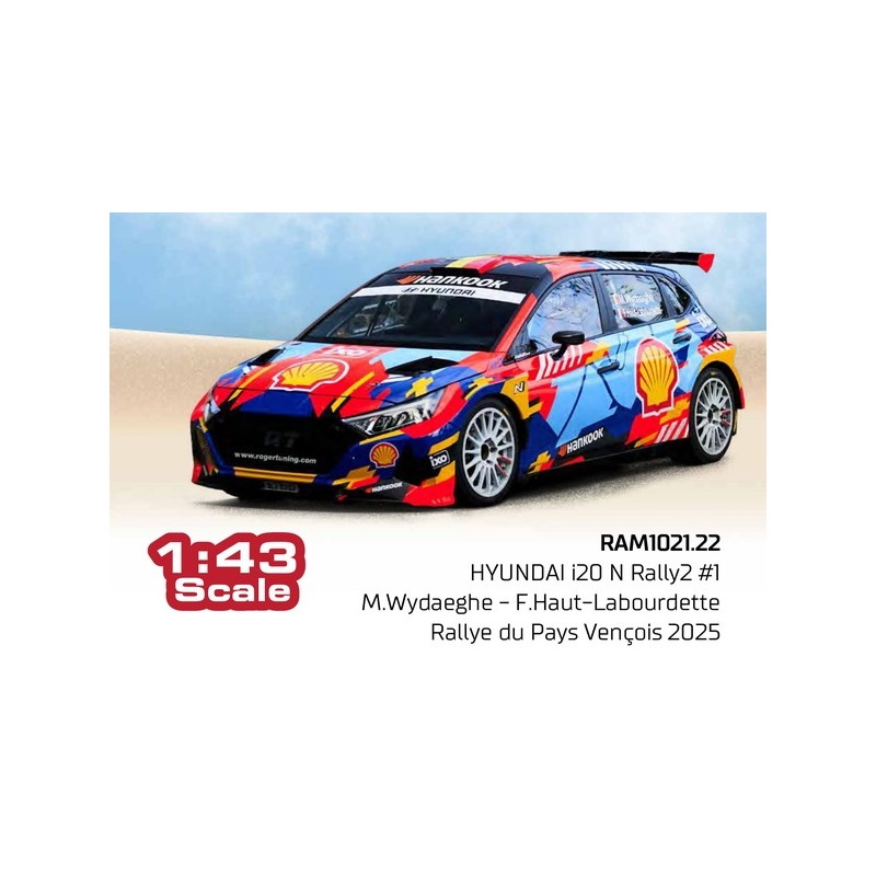 Miniature diecast rally 1/43 de la Hyundai i20 N Rally2 n 1 pilotée par M. Wydaeghe - F. Haut-Labourdette au Rallye du Pays Vencois 2025. Modèle réduit de voiture de rallye IXO RAM1021. Catalogue Miniatures automobile IXO 2026. Maquette auto de collection.