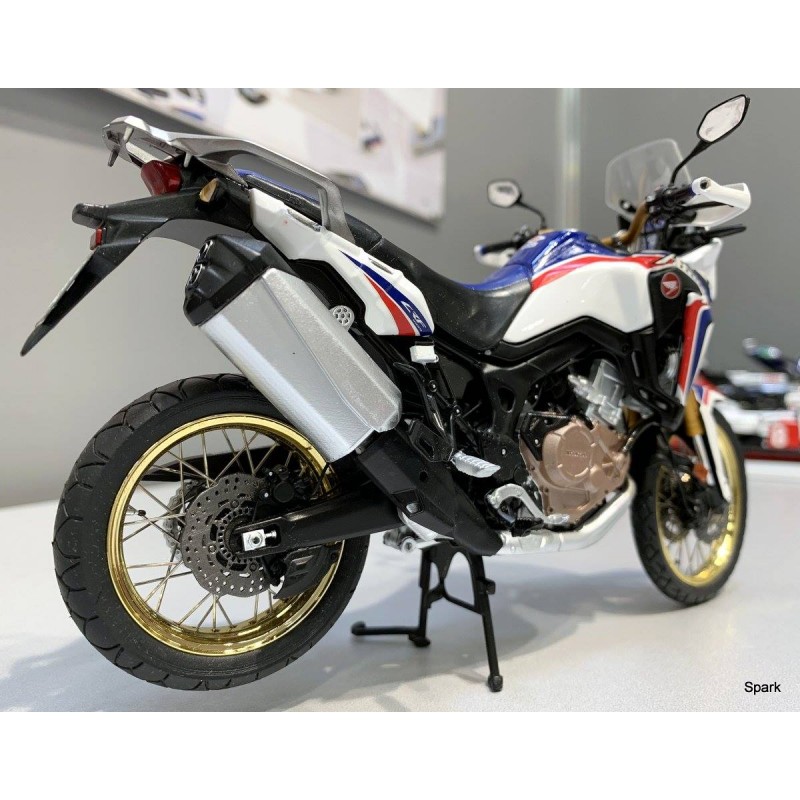 Miniature diecast bike 1/12 de la Honda CRF 1000L Africa Twin Adventure Sports de 2017. Modèle réduit de moto Spark M12044. Miniature Honda moto du catalogue Spark 2018. Maquette auto de collection.