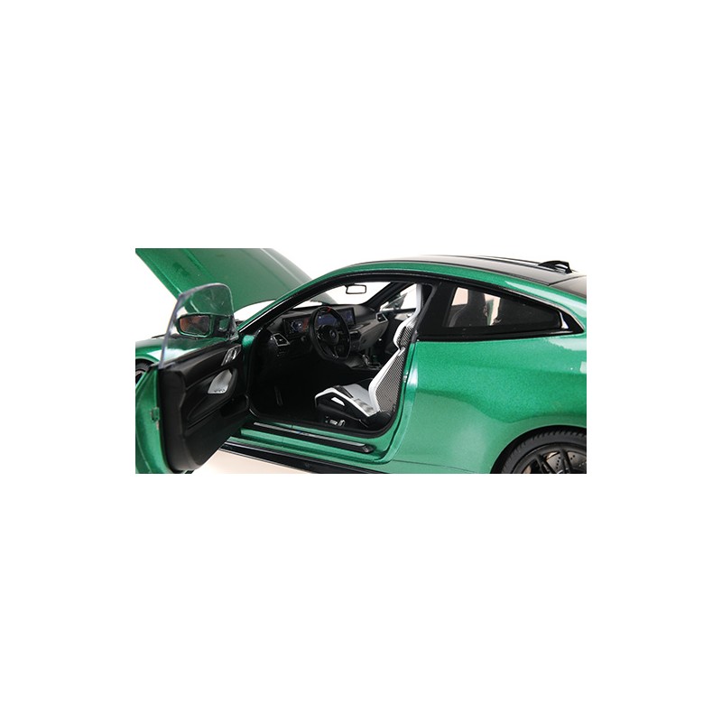 Miniature diecast car 1/18 de la BMW M4 année 2024 couleur Green Metallic. Modèle réduit de voiture Minichamps 110020142. Catalogue Miniatures automobile Minichamps 2025. Maquette auto de collection.