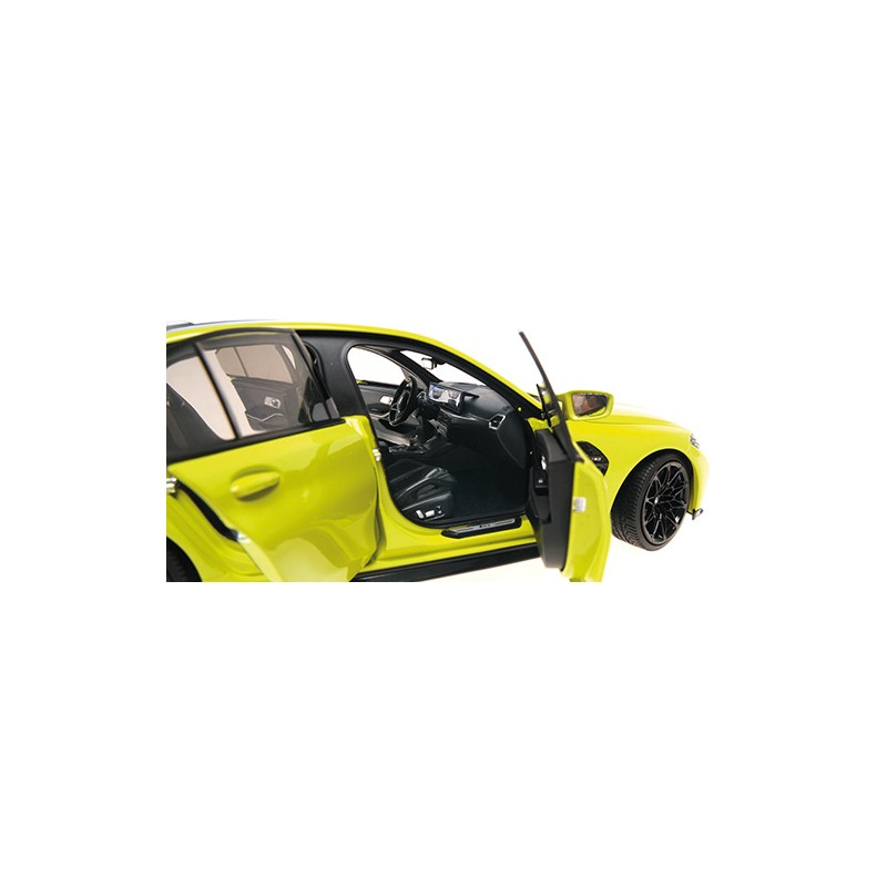 Miniature diecast car 1/18 de la BMW M3 année 2024 couleur Yellow. Modèle réduit de voiture Minichamps 110020222. Catalogue Miniatures automobile Minichamps 2025. Maquette auto de collection.