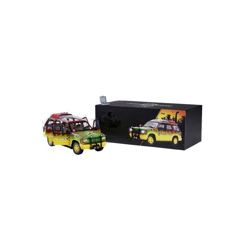Miniature diecast car 1/18 de la Ford USA Explorer 4x4 Jurassic Park Movie année 1995 couleur Red Green Yellow. Modèle réduit de voiture Jada 253255100. Catalogue Miniatures automobile Jada 2025. Maquette auto de collection.