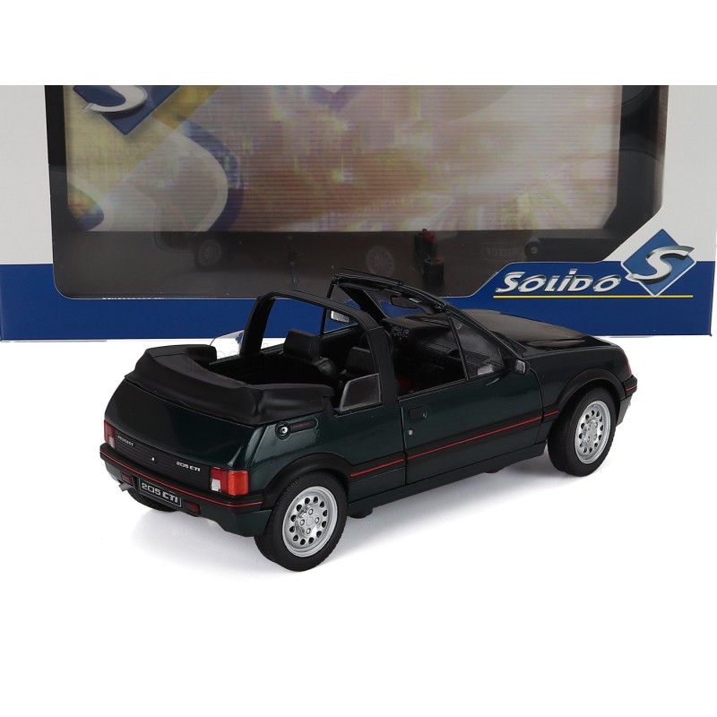 Miniature diecast car 1/18 de la Peugeot 205 Cti MKI GTI 1.6 Cabriolet année 1986 couleur Green Met. Modèle réduit de voiture Solido S1806204. Catalogue Miniatures automobile Solido 2025. Maquette auto de collection.