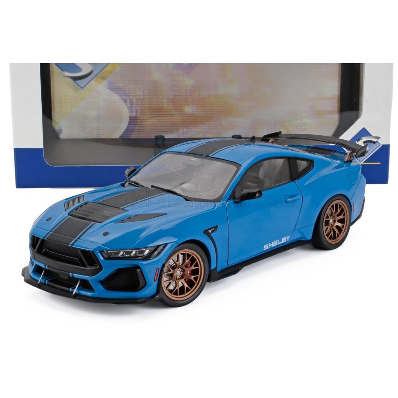 Miniature diecast car 1/18 de la Ford Mustang Shelby Super Snake Coupe année 2025 couleur Blue Met Black. Modèle réduit de voiture Solido S1813802. Catalogue Miniatures automobile Solido 2025. Maquette auto de collection.