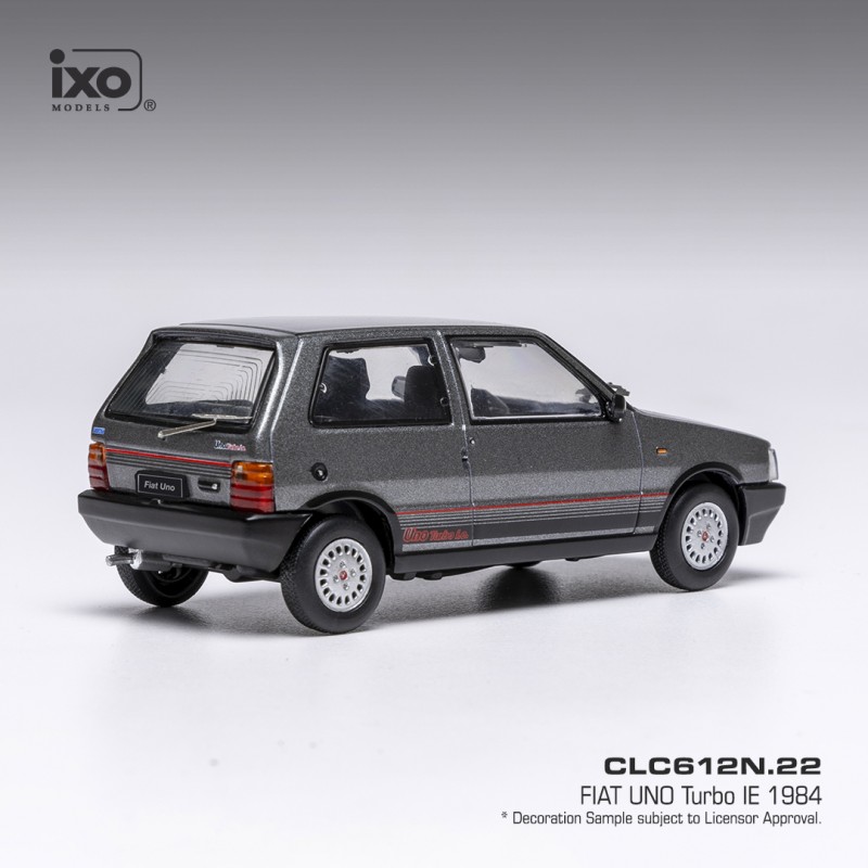 Miniature diecast car 1/43 de la Fiat Uno Turbo I.E année 1984 couleur Grey. Modèle réduit de voiture IXO CLC612N. Catalogue Miniatures automobile IXO 2025. Maquette auto de collection.