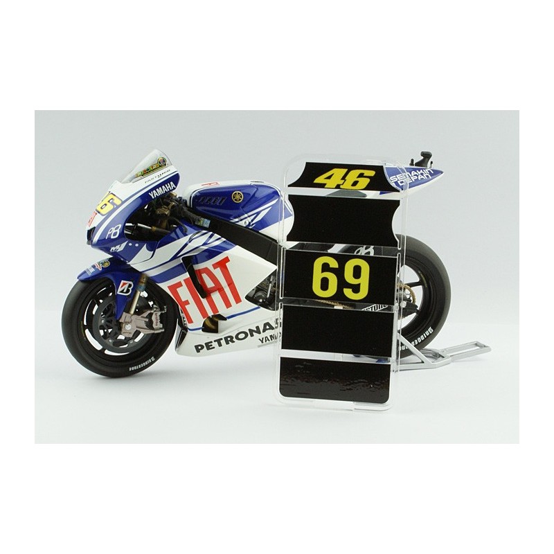 Pitboard 1/12 du pilote moto Valentino Rossi permettant de mettre en valeur vos modèles réduits Moto GP et décorer votre vitrine. Motorsport Modelisme PBVAL025