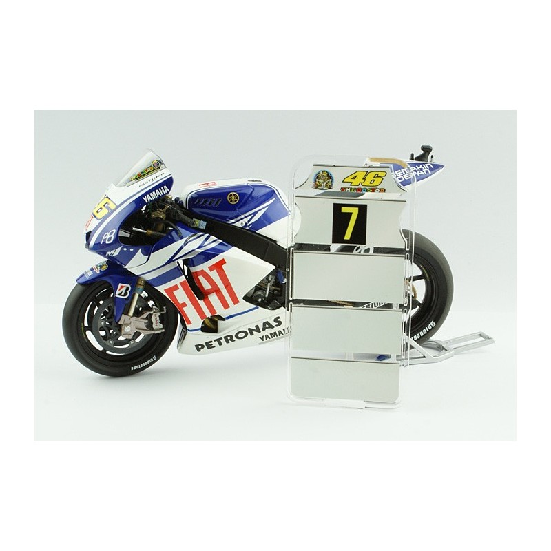 Pitboard 1/12 du pilote moto Valentino Rossi permettant de mettre en valeur vos modèles réduits Moto GP et décorer votre vitrine. Motorsport Modelisme PBVAL030