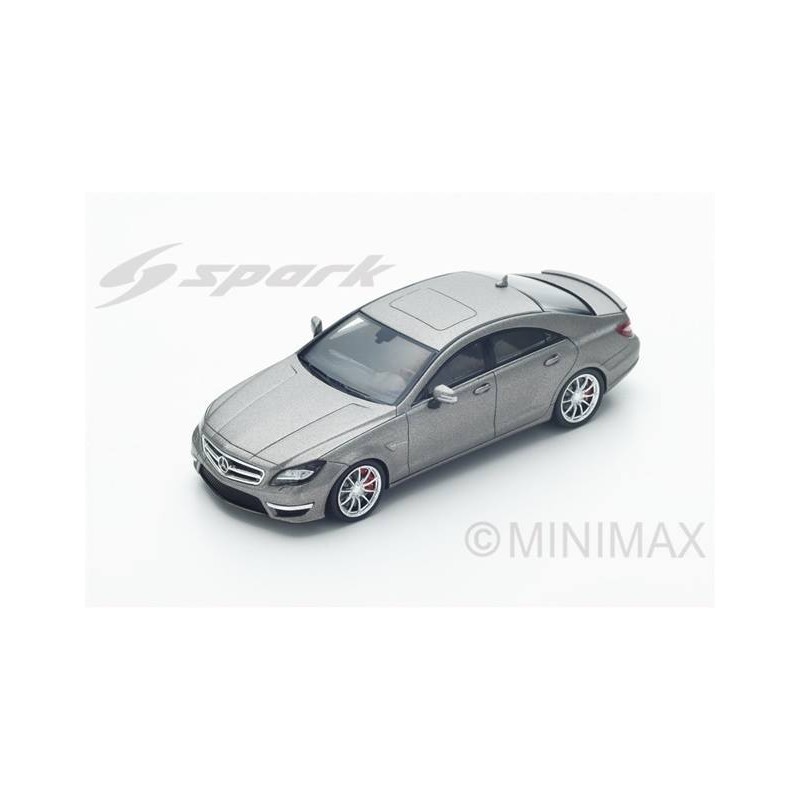 Miniature diecast 1/43 de la Mercedes CLS 63 AMG C218 Silver de 2012. Modèle réduit de voiture Spark S4982. Maquette auto de collection.