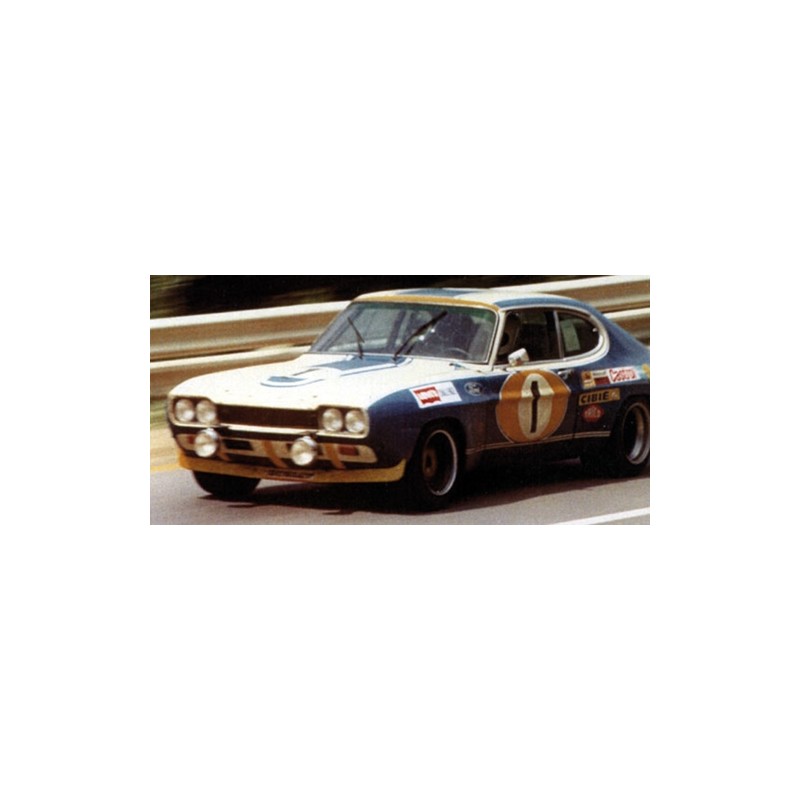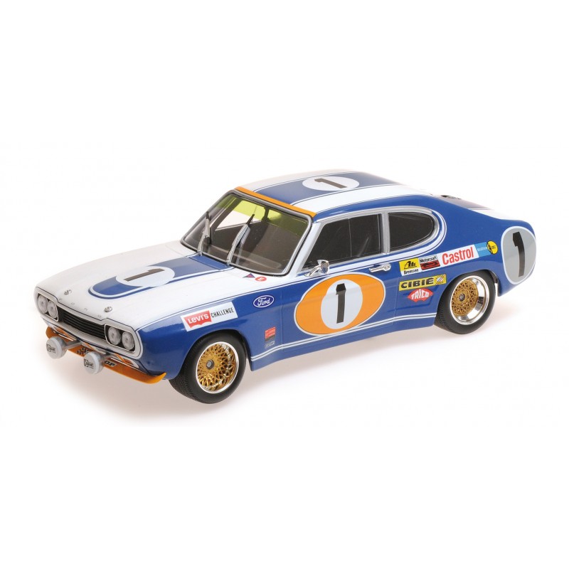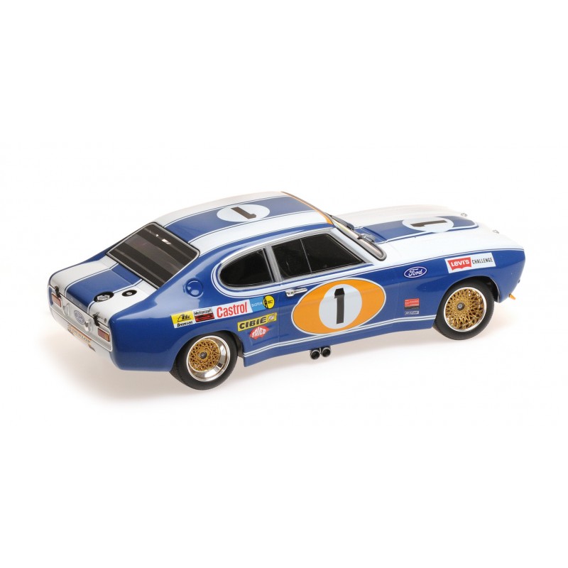 Miniature diecast car racing 1/18 de la Ford RS 2600 n 1 Ford Koln pilotée par Glemser - Solder-Roig lors des 24 Heures de Spa Francorchamps 1972. 3ème. Modèle réduit de voiture Minichamps 155728511. Miniature Ford automobile du catalogue Minichamps 2018. Maquette 24h auto de collection.