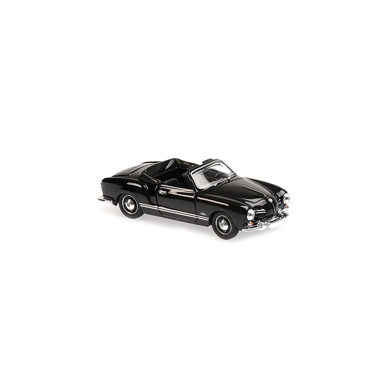 Miniature diecast car 1/43 de la Volkswagen Karmann Ghia Cabriolet Black de 1955. Modèle réduit de voiture Minichamps 940051030. Miniature Volkswagen automobile du catalogue Minichamps 2018. Maquette auto de collection.