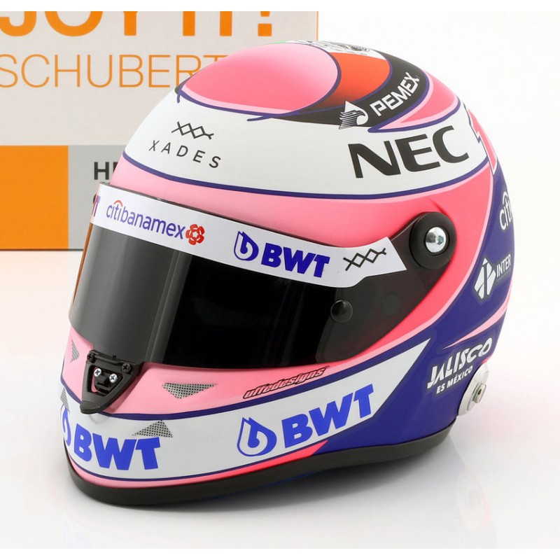 Casque échelle 1/2 de Sergio Perez lors de la saison 2018 de Formule 1. Miniature helmet F1 Schuberth 9088000226. Maquette auto de collection.