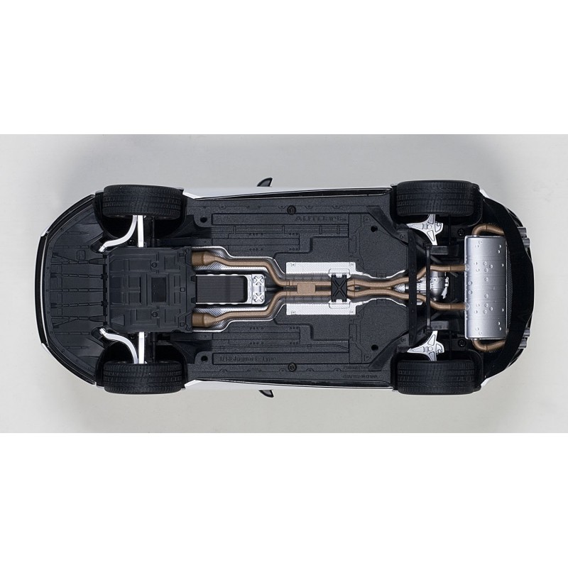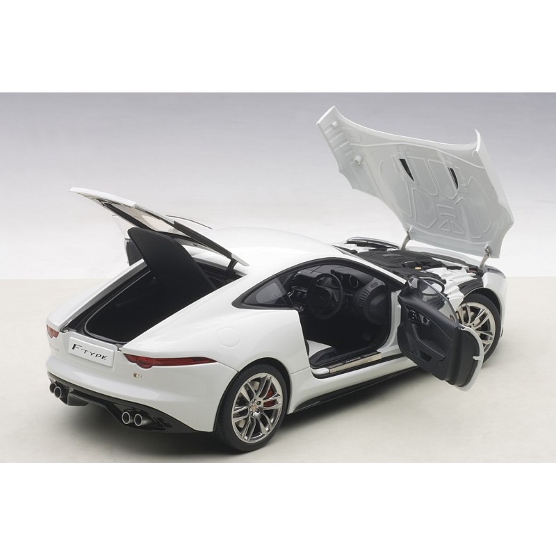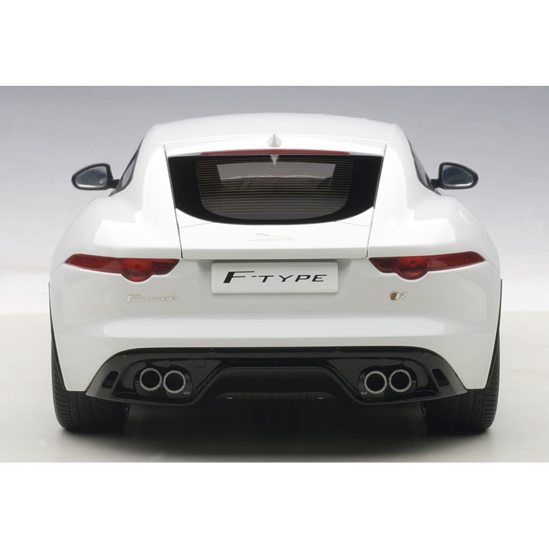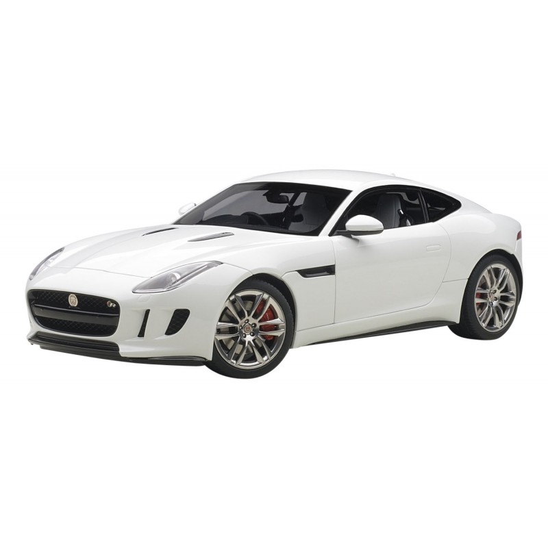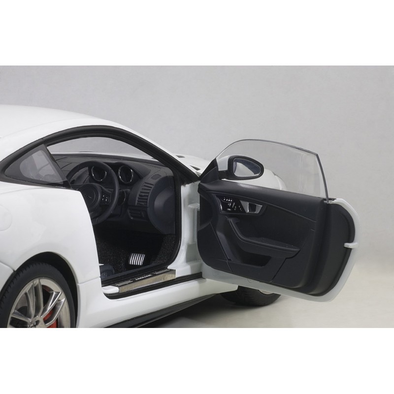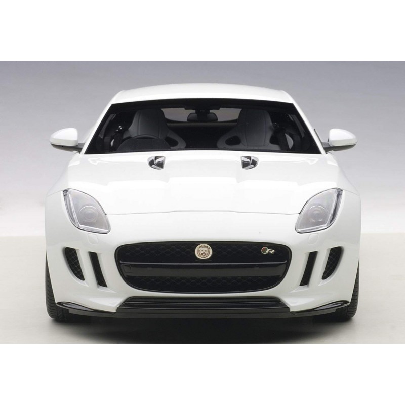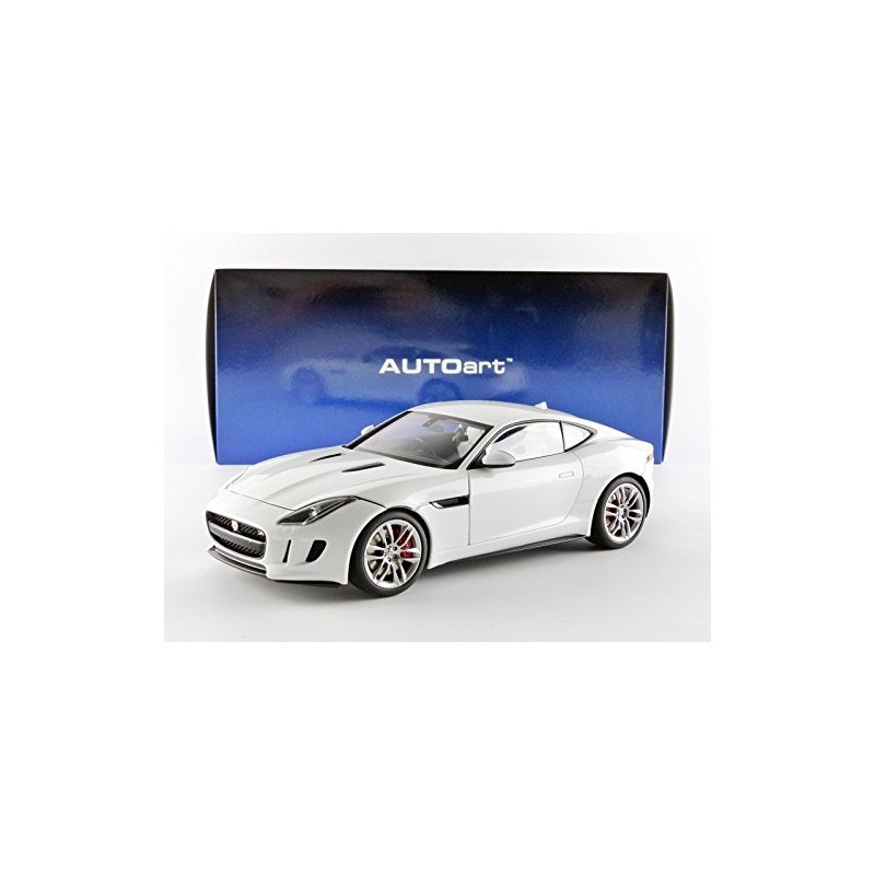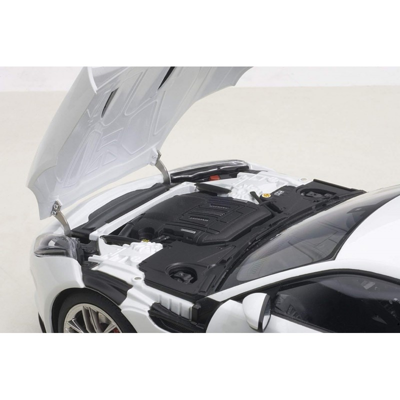 Miniature diecast car 1/18 de la Jaguar F-Type R couleur White de 2015. Modèle réduit de voiture Autoart 73651. Maquette auto de collection.