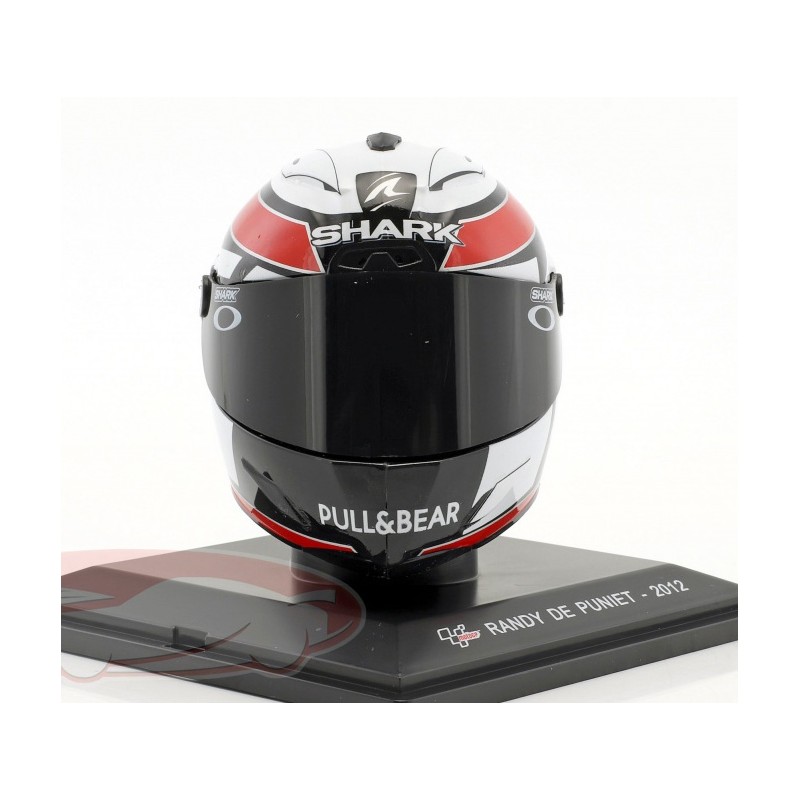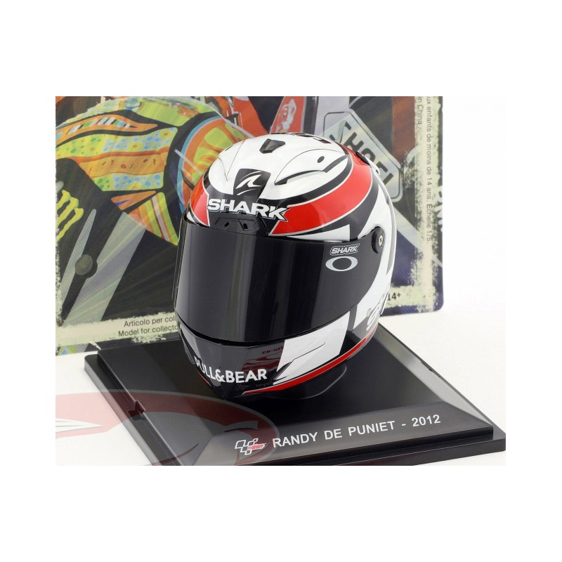 Casque échelle 1/5 de Randy de Puniet en Grand Prix MotoGP en 2012. Miniature helmet IXO GC018. Maquette moto de collection.