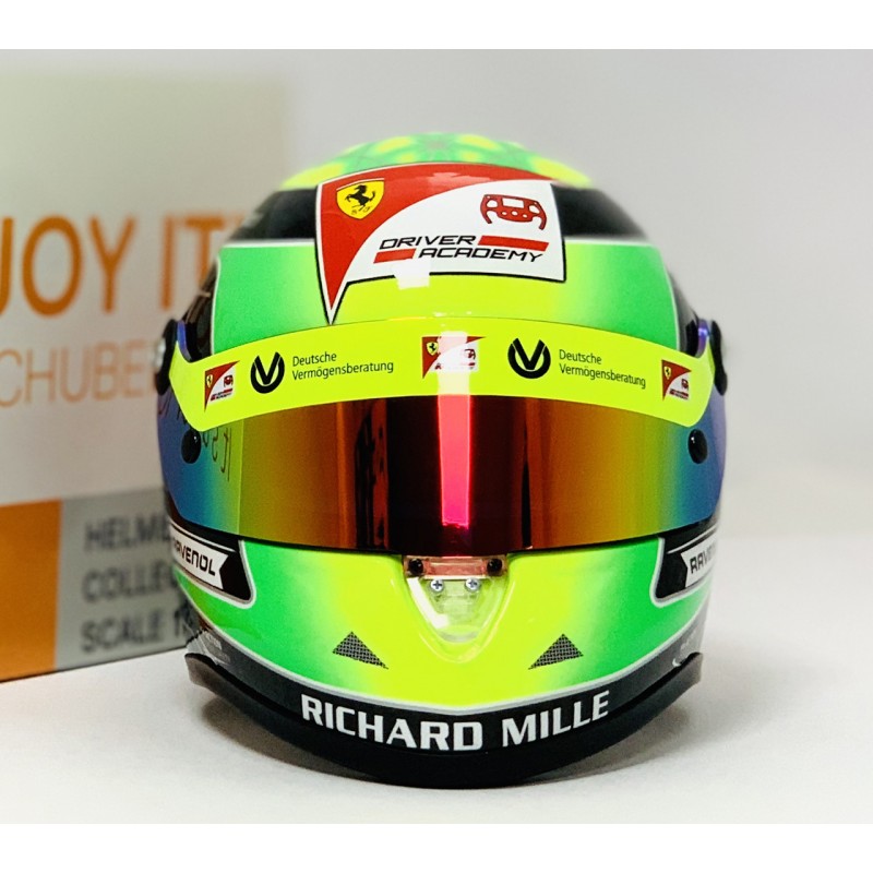Casque échelle 1/2 de Mick Schumacher lors de la saison 2019 de F2. Miniature helmet F1 Schuberth. Maquette auto de collection.