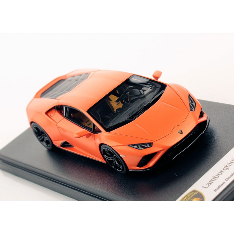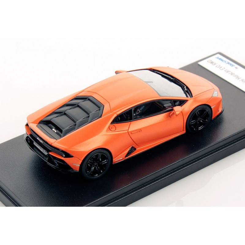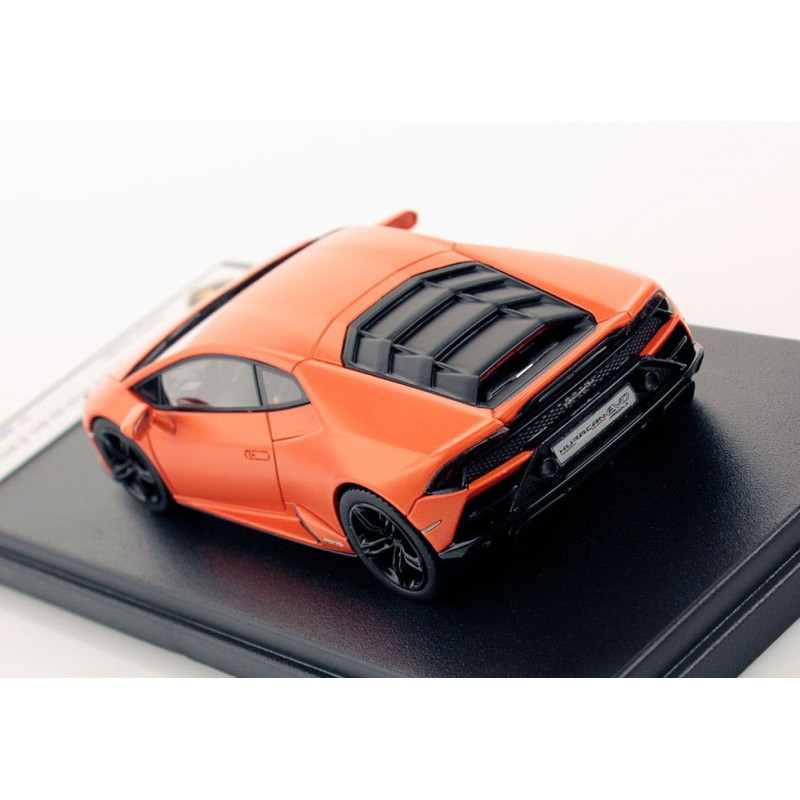Miniature diecast car 1/43 de la Lamborghini Huracan Evo RWD couleur Arancio Xanto. Modèle réduit de voiture Looksmart LS517E. Catalogue Miniatures automobile Looksmart 2020. Maquette auto de collection.