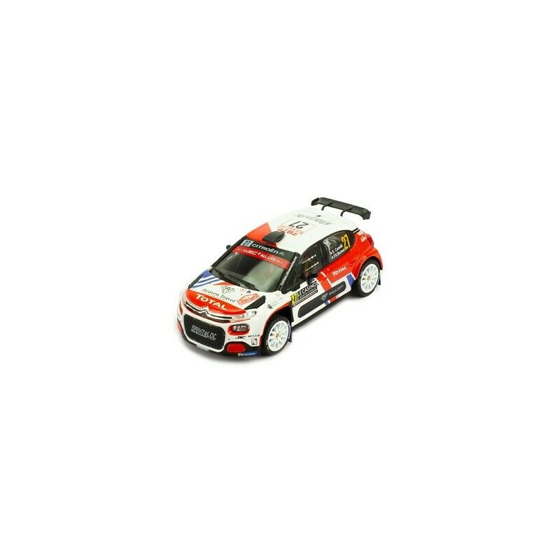Miniature diecast rally 1/43 de la Citroen C3 R5 n 27 pilotée par Camilli - Buresi au Rallye Monte Carlo 2020. Modèle réduit de voiture de rallye IXO RAM747. Catalogue Miniatures automobile IXO 2020. Maquette auto de collection.