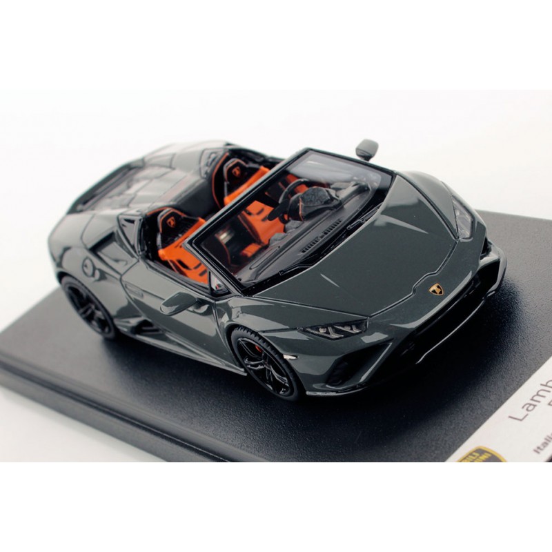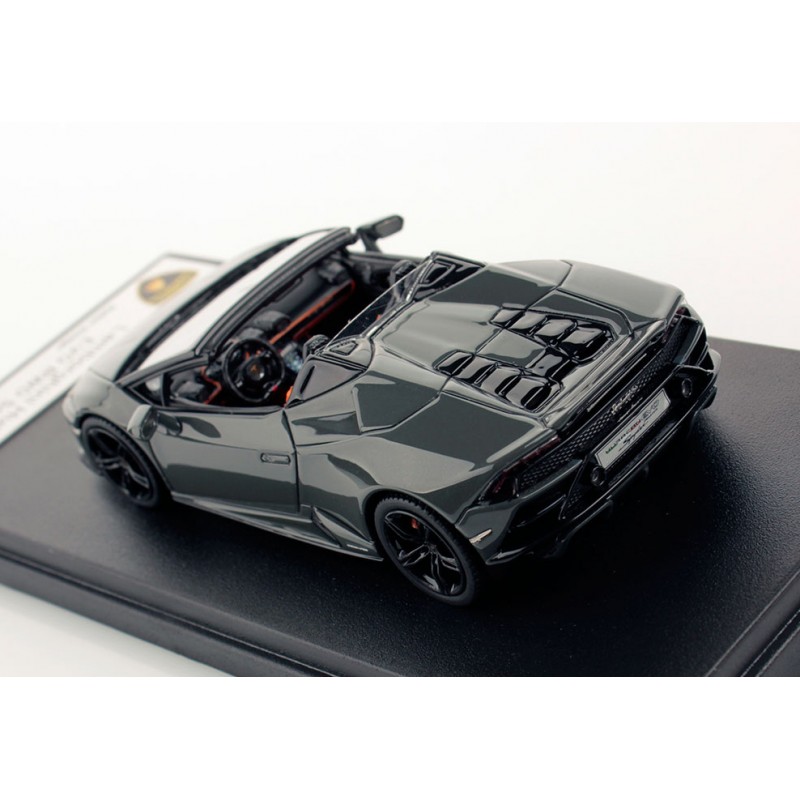 Miniature diecast car 1/43 de la Lamborghini Huracan Evo RWD Spyder couleur Grigio Telesto. Modèle réduit de voiture Looksmart LS521C. Catalogue Miniatures automobile Looksmart 2020. Maquette auto de collection.
