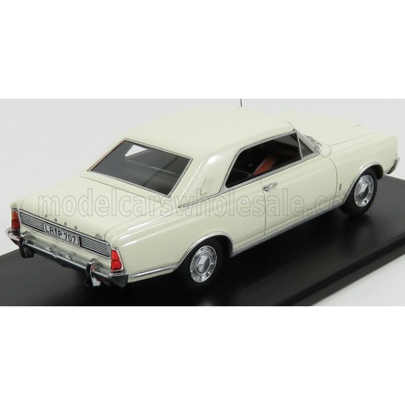 Miniature diecast car 1/43 de la Ford England Taunus P7B 20M Coupe année 1971 couleur White. Modèle réduit de voiture NEO NEO49551. Catalogue Miniatures automobile NEO 2021. Maquette auto de collection.