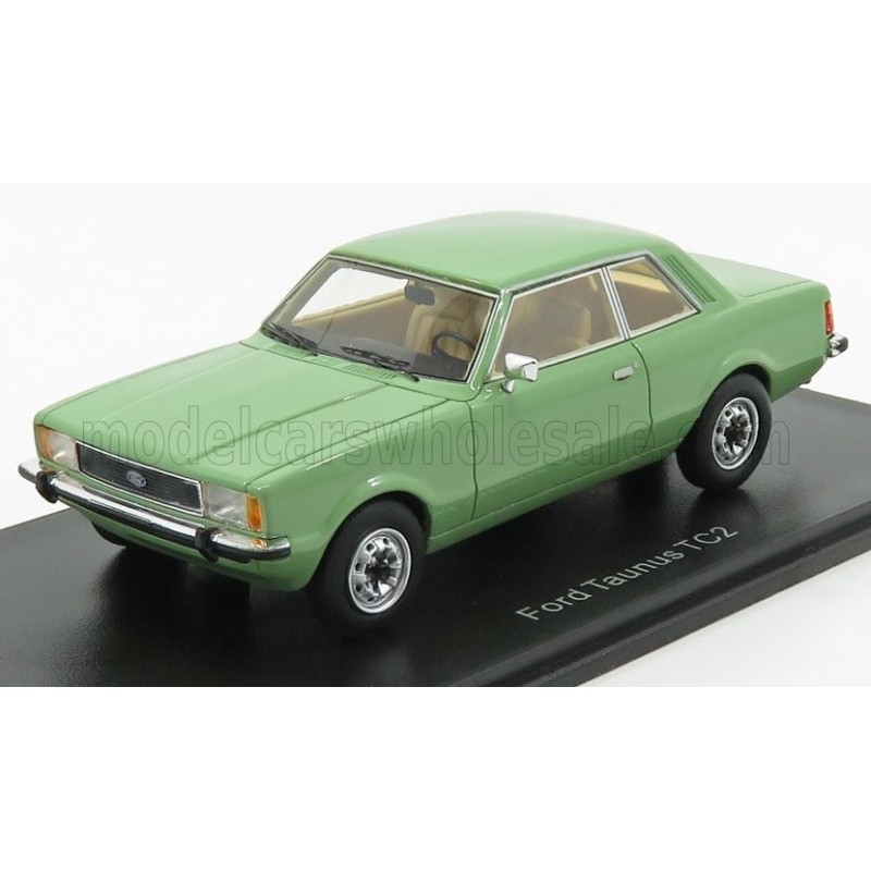 Miniature diecast car 1/43 de la Ford England Taunus TC2 GHIA année 1976 couleur Light Green. Modèle réduit de voiture NEO NEO45139. Catalogue Miniatures automobile NEO 2021. Maquette auto de collection.