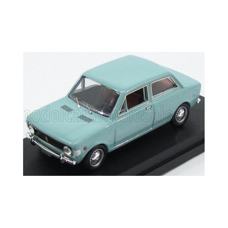 Miniature diecast car 1/43 de la Fiat 128 2 Doors année 1969 couleur Garda Light Blue. Modèle réduit de voiture Rio Models 4489. Catalogue Miniatures automobile Rio Models 2021. Maquette auto de collection.