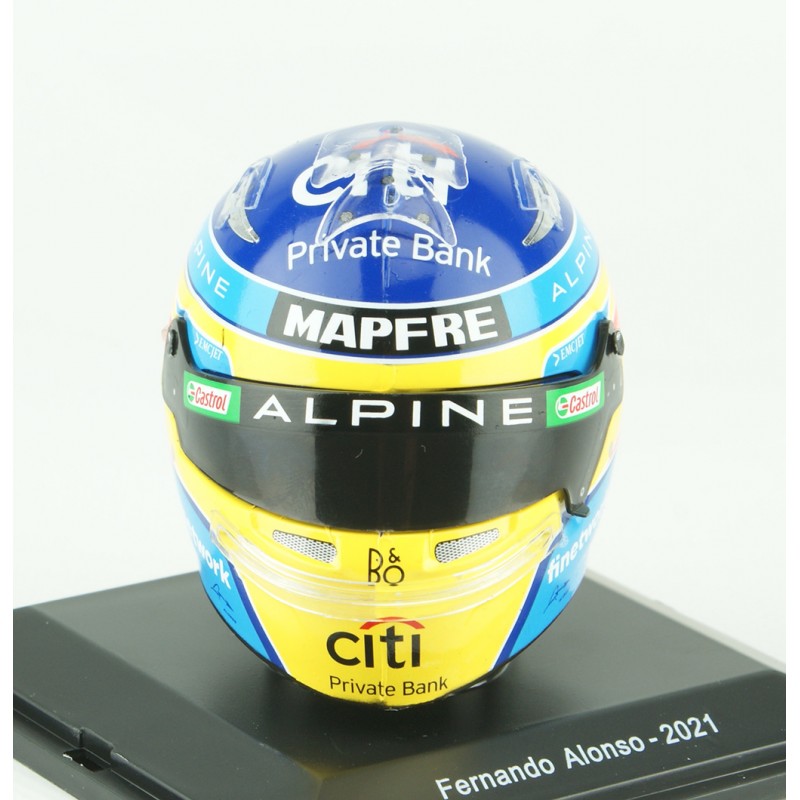 Casque Helmet 1/5 de Fernando Alonso en F1 en 2021. Alpine. Miniature helmet Spark 5HF061. Maquette F1 de collection.