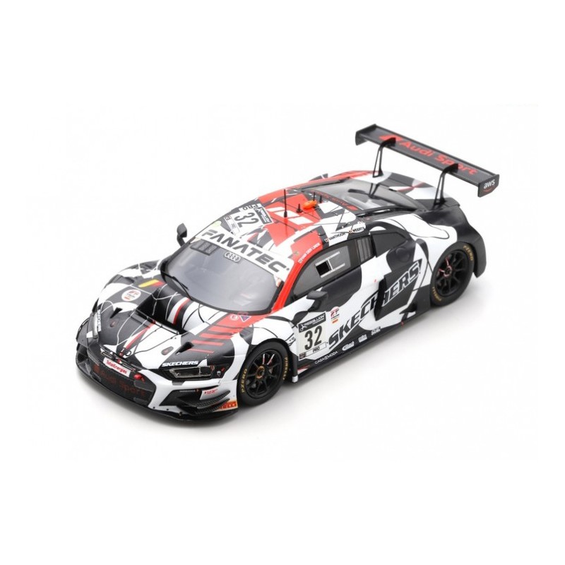 Miniature diecast car racing 1/43 de l'Audi R8 LMS GT3 n 32 Audi Sport Team WRT pilotée par Vanthoor - Van Der Linde - Weerts aux 24 Heures de Spa Francorchamps 2021. 2ème. Limited Edition 500 pcs. Modèle réduit de voiture Spark SB430. Catalogue Miniatures automobile Spark 2021. Maquette auto de collection.